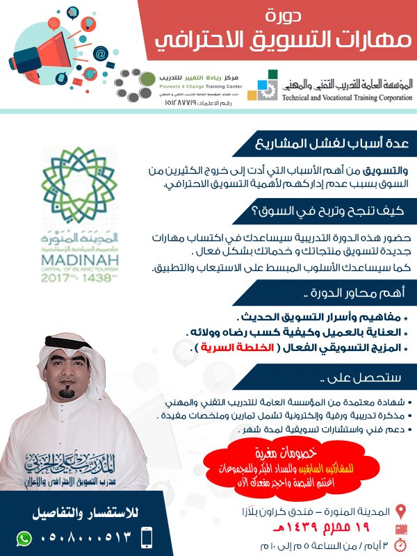 المدرب علي الحربي On Twitter المقاعد الأخيرة في دورة مهارات التسويق الاحترافي في المدينة المنورة رابط الاشتراك Https T Co Fgfx35vsdd 0508000513 دورات المدينة Https T Co Ahatbcjodv